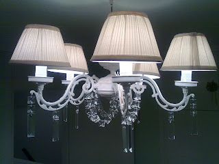 "I bought this cheeeap old lamp at a second hand shop, as you can see it needed a lot of help to have a new and stylish life but here's where my Rimfrost came to the rescue. I used only part of all the crystals and the rest are ready for another lamp I have in mind (keep tuned). So I gave a couple of coats of primer and a coat of white paint and few strokes of antiquing paint, cause it looked too white. Then I used the crystals and bought some nice shades. I'm so proud of the final look and how easy it has been."