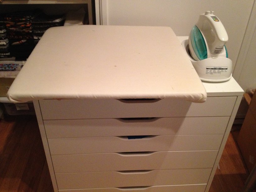 I also discovered that the top of the Alex was a good place to put my little pressing board and iron. The only trouble was that there was "just enough" space for the iron and board and if either shifted, one of them was in danger of falling off. Not nice.